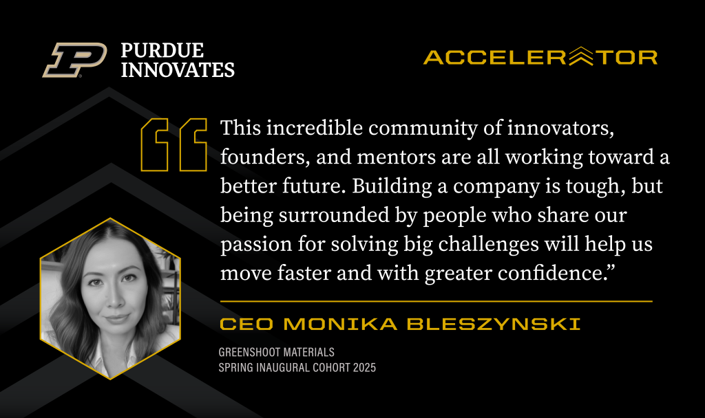 “We are incredibly excited to kick off the very first iteration of the Purdue Innovates Accelerator,” Purdue Innovates Incubator Associate Director Doug Applegate said. “The innovation and talent on display is incredible. Our team can’t wait to help them take their next giant leap over the next three months with tailored strategic support and access to a powerful network of world-class mentors, corporate partners, investors and alumni.”